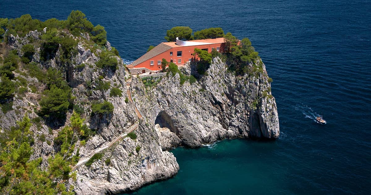 An architecture reference comes back to Casa Malaparte in Capri, with windows and outdoor spaces strategically positioned to capture the best views of the sea and landscape.
