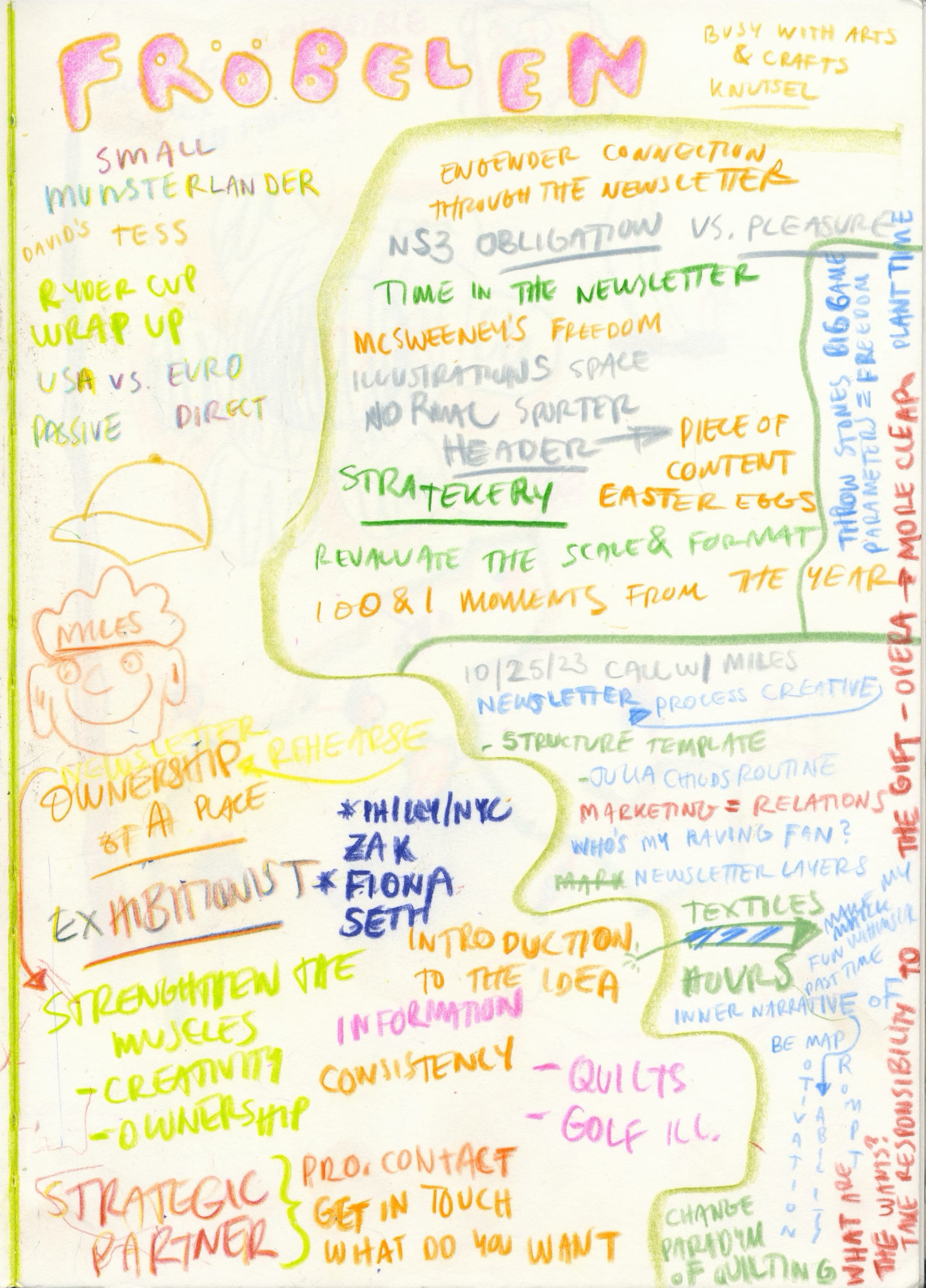 In my work, I’m looking for the right packages/vehicles to carry an idea. Sometimes that’s an illustration or a quilt, artwork, publication, or, more recently, a newsletter. A quilted patchwork is the same as collaged artwork in my book. They just use different materializations for different contexts. The process is a funny thing to talk about because there’s logic in the computer folders, but in practice, the process goes wherever it wants to go.