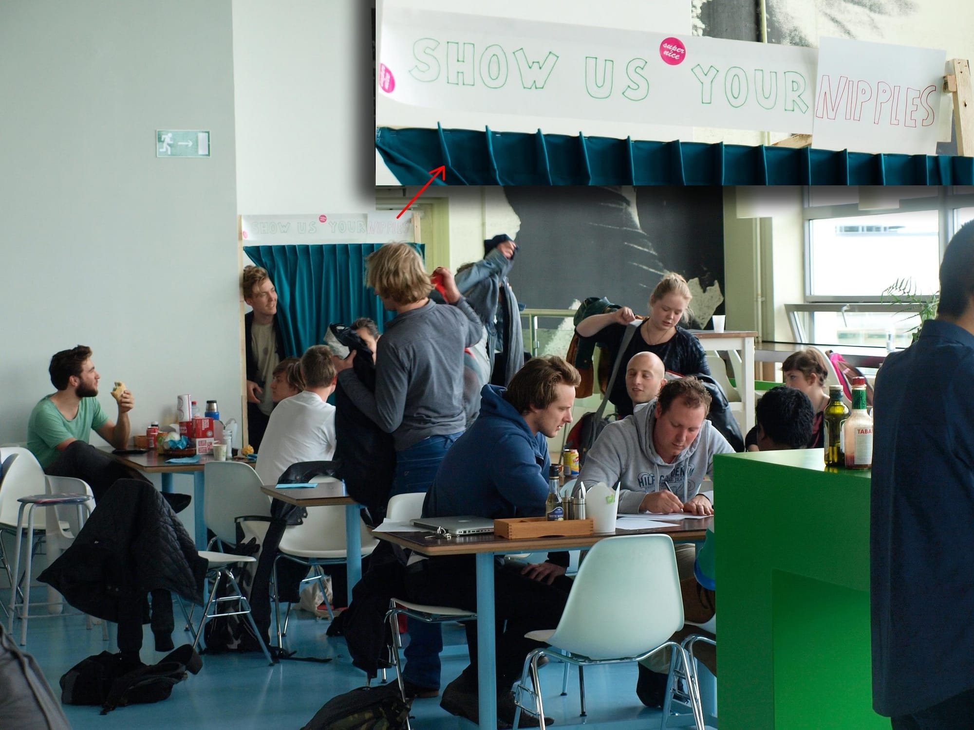 The first Nipple Booth was the brainchild of Design Academy Eindhoven’s (DAE) student-run magazine Snor for its Super Nice issue (2011), which I was the editor of. International art school English is a funny, simplified language. DAE students used "super nice" for everything, but some of us at Snor were cynical about what we all really meant when we talked about design aesthetics. We wanted to find objective examples of super nice aesthetics, and we picked nipples to focus on. Obviously. The first nipple booth (imagine a green textile phone booth) was installed in the canteen for students to take anonymous nipple self-portraits. Since then, I’ve carried the Nipple Booth torch to the Eye Filmmuseum Amsterdam, Stedelijk Museum Amsterdam, and lastly, at Art Museum Z33 in Hasselt, Belgium. To date, there are about 1200 nipples in the archive.